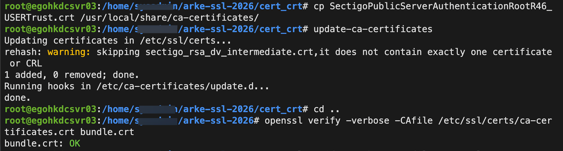 小鑫 2026年3月30日 · Server [ssl] 部署 Sectigo ssl 时 ca-certificates 缺少根证书的情况 从 ssl 后台下载了证书后,先测试证书链是否正常: 可知,bundle.crt 的证书链不正常。 我们用这种…
