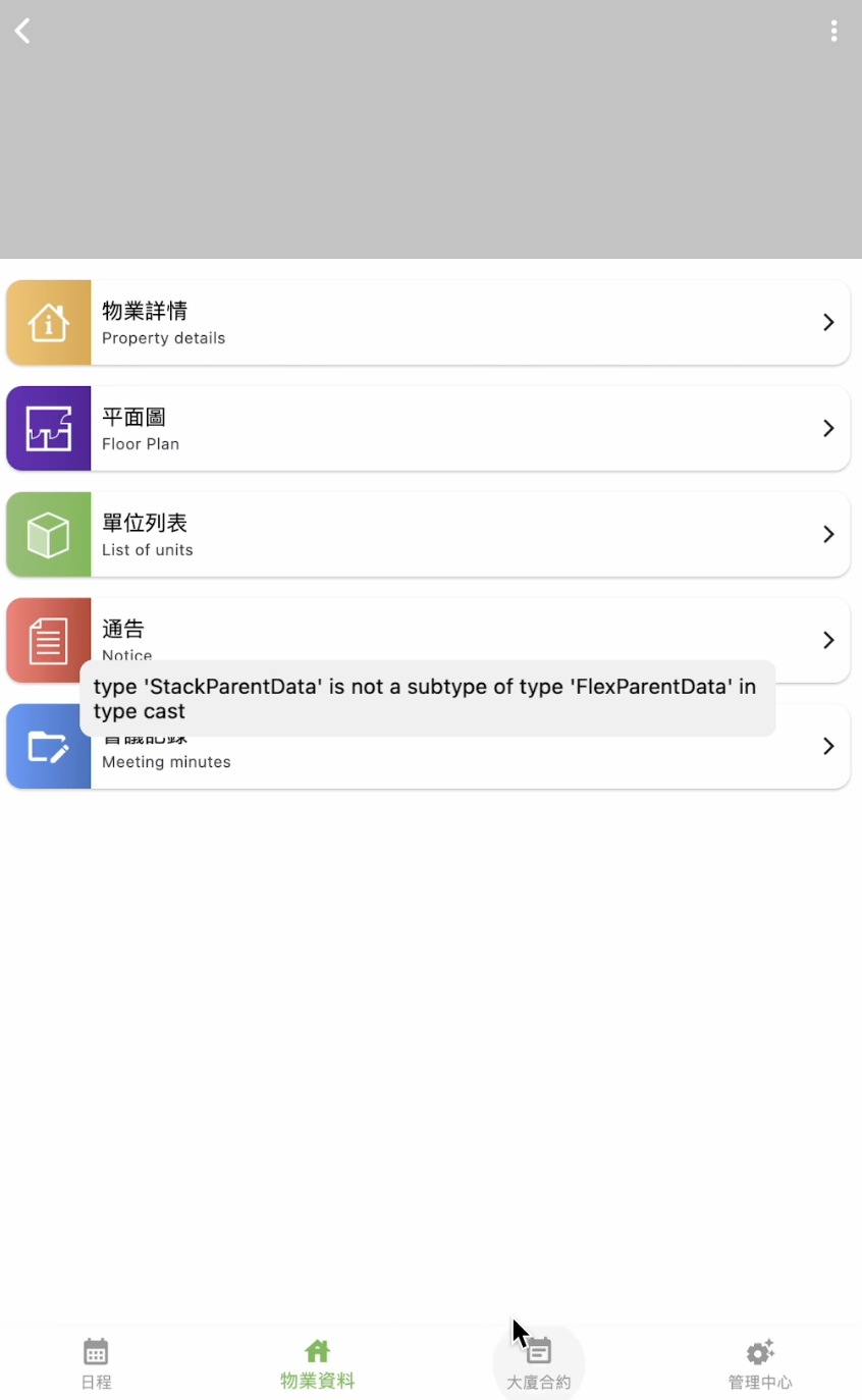 小鑫 2025年5月10日 · Flutter [flutter/ios] type ‘StackParentData’ is not a subtype of type ‘FlexParentData’ in type cast 原因是:在 Stack 组件中使用了类似 Expanded、Flexible 组件
