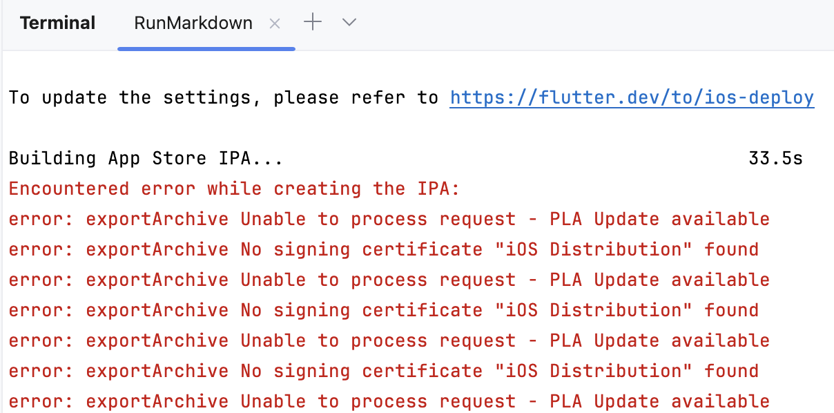 小鑫 2025年7月8日 · Flutter [flutter/ios] exportArchive Unable to process request – PLA Update available 意思是 《Apple Developer Program 许可协议》(即 PLA)有更新,需要账户拥有者查阅并…