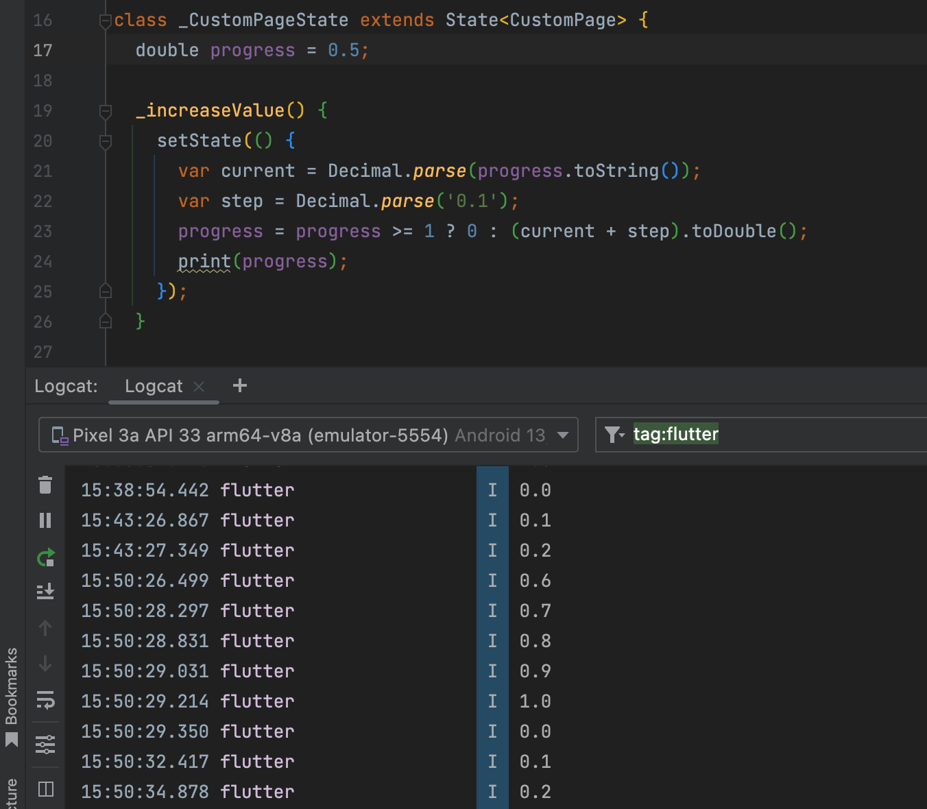 在使用 CircularProgressIndicator() 的时候,value 值需要是 double 类型。在一次自增测试中(增量为 0.1) ,发现结果精度出现问题。